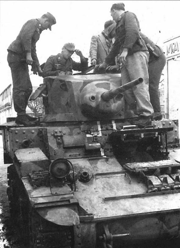 Немецкие танкисты осваивают трофейный американский танк МЗА1. Тунис, 1942 год. Машина — в многоцветной американской камуфляжной окраске