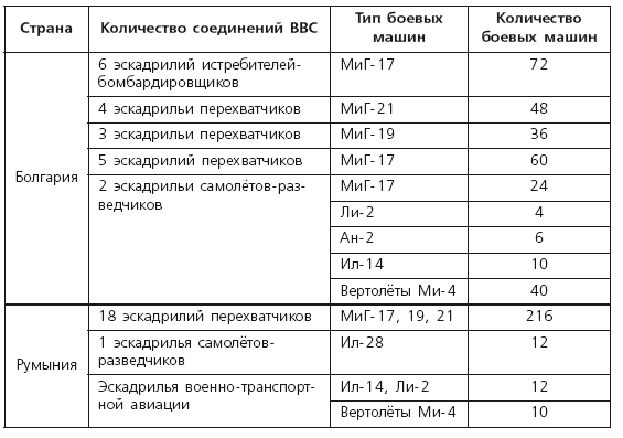 Состав ВВС Болгарии и Румынии (на конец 1971 г.)[1390]