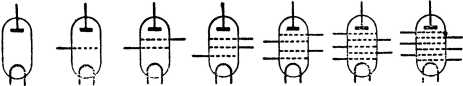 Различные типы электронных ламп: диод, триод, тетрод, пентод, гексод, пентагрид и октод.