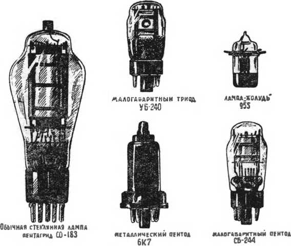 Появились кроме того, чрезвычайно миниатюрные лампы. Некоторые из них напоминали по форме жолудь, и их стали называть лампами типа «жолудь». Другие были величиной с полпальца; к ним пристало название «пальчиковые».