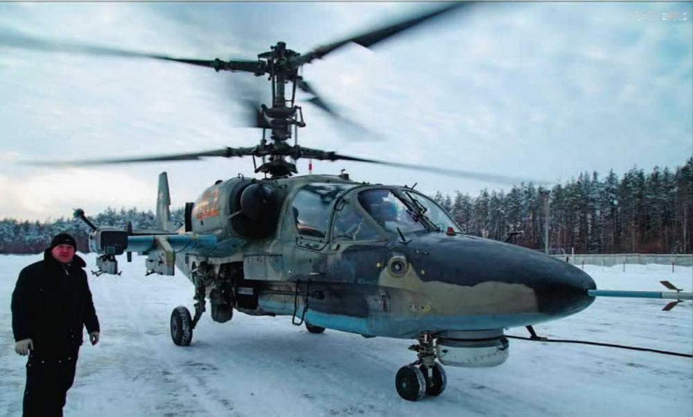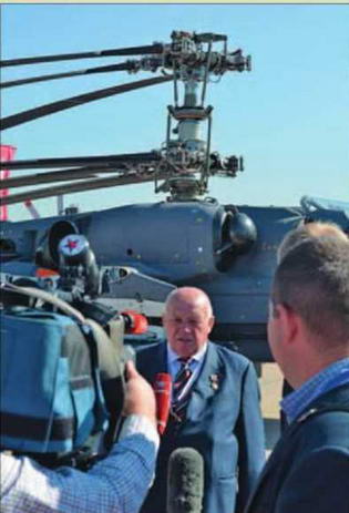 С.В. Михеев у вертолета Ка-52К с подвешенной ракетой Х-35УЭ