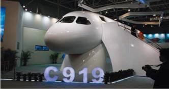 Центральным экспонатом павильонной экспозиции Корпорации коммерческих самолетов Китая COMAC на выставке в Чжухае стал полноразмерный 17-метровый макет кабины экипажа и передней части пассажирского салона перспективного 156168-местного среднемагистрального самолета С919, разрабатываемого в КНР в широкой кооперации с ведущими зарубежными компаниями (подробнее о нем — см. «Взлёт» № 9/2010, с. 46). У него ежедневно выстраивались огромные очереди желающих собственными глазами увидеть, как будет выглядеть внутри лайнер, который по задумке своих создателей должен составить конкуренцию популярнейшим во всем мире «Боингам» модели 737 и «Эрбасам» семейства А320. Посмотреть, однако, можно было только интерьер пассажирского салона — в оборудованную по самым современным стандартам кабину экипажа допускали только «избранных».