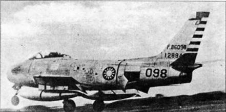 На Тайване часть "сейбров" получила на вооружение УР класса "воздух-воздух" типа AIM-9B "Сайдуиндер".