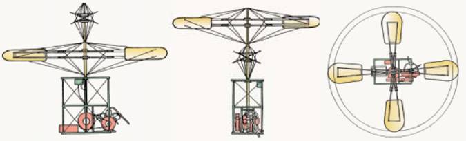 Рисунок вертолета N1 из газеты «Киевская искра» от 17.09.1909. Видны дополнительные консоли для повышения жесткости лопастей в плоскости вращения