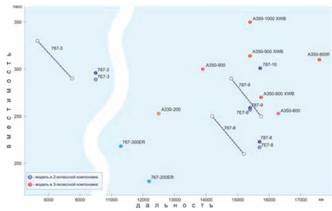 Таким образом, в 2014 г. национальный авиаперевозчик должен начать получать дальнемагистральные самолеты сразу двух конкурирующих между собой поставщиков, имеющие при этом весьма близкие характеристики. Безусловно, использование на одной маршрутной сети двух сходных типов самолетов повышает удельные издержки эксплуатации и тем самым снижает финансовую эффективность. Однако, во-первых, в данном случае далеко не все так однозначно с будущей сетью перевозок (подробнее об этом ниже). Во-вторых, есть и иные плюсы, главный из которых связан не с перевозками, а с авиапромом: покупка самолетов-конкурентов позволяет продолжать расширяющееся сотрудничество как с «Боингом», так и с «Эрбасом», что при грамотной политике и тактике взаимодействия способно существенно укрепить российскую авиапромышленность. Но есть и плюсы перевозчика: диверсификация снижает зависимость от одного поставщика, уменьшается и риск, связанный с использованием в конструкции новых самолетов множества революционных технических и технологических решений.