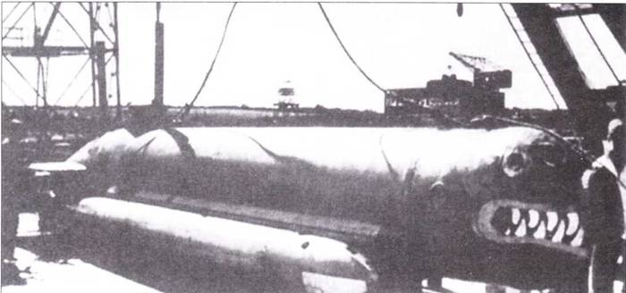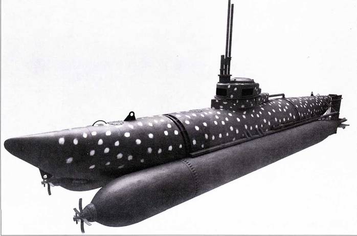 Предусматривалась также возможность установки удлиненного носового обтекателя с люком. Под обтекателем размещались два аквалангиста. Аквалангисты могли установить мины под днище корабля противника. стоящего в порту, или провести какую- либо другую диверсионную операцию. В этом случае под днище лодки подвешивались необходимые подрывные заряды. На практике ни разу не использовалась ни мина, ни транспортный отсек.