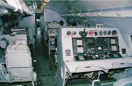 Справа: интерьер салона и рабочие места операторов специального оборудования самолета Ил-20М
