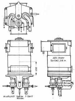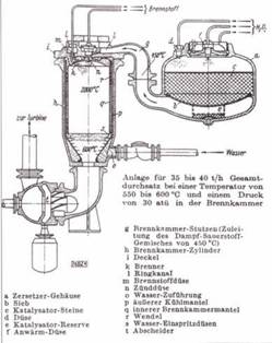 Схема деструктора (каталитической камеры) и камеры сгорания на подлодке XVII серии.