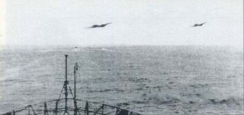 Торпедоносцы ДБ-Зф атакуют конвой, снимок сделан с румынского минзага «Мурджеску», 1943 г.