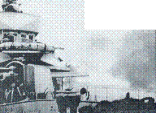Атаку торпедоносцев на конвой румынский эсминец «Р.Фердинанд» отбивает огнём из 120-мм орудий главного калибра.