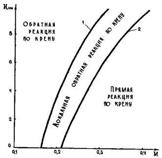 Все сказанное справедливо для полета с ny = 1. А что произойдет в случае резкого отклонения РУС, допустим, при выполнении виража с ny = 4? То же самое! Только кривые / и 2 (рис. 1) переместятся правее, поскольку значения чисел М полета увеличатся в SQRT(ny)раз, промежуток же между ними сократится, так как с ростом числа М αдоп составит примерно 16° Так что между ними все же сохранится, хотя и очень узкая (всего 1-2°), область локальной обратной реакции по крену.
