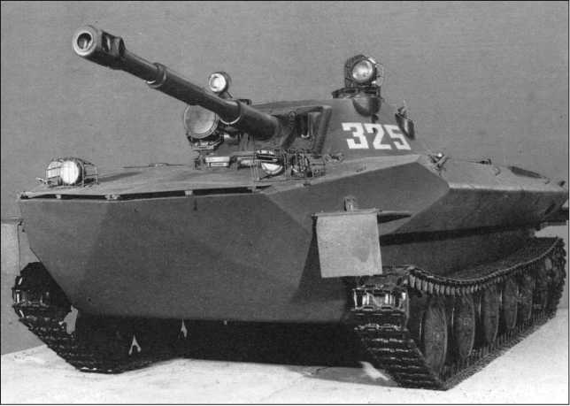 Опытный образец плавающего танка ПТ-76М. Главное его отличие от серийной машины — корпус новой формы.