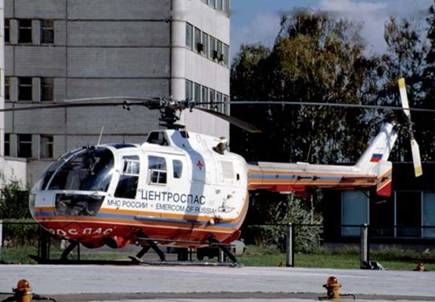 Посадка вертолета Bo-105 на территории московской больницы № 72