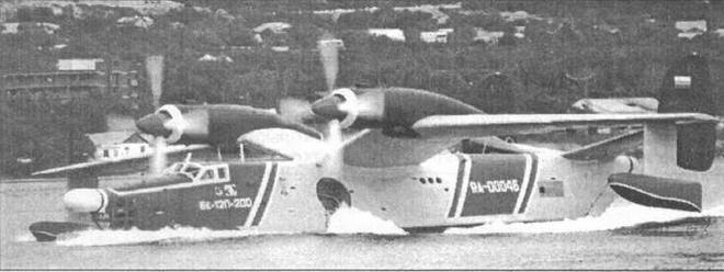 Испытательные полеты прототипа показали, что аэрогидродинамическая компоновка Бе-12, его устойчивость и управляемость отвечают необходимым требованиям. Это ярко подтвердилось в одном из полетов с вынужденной посадкой на воду. Летчик-испытатель Петр Петрович Бобро - человек большого роста и недюжинной силы, добродушный и покладистый, летавший во время войны на «Бостонах», любил повторять один каламбур с философским оттенком: «Очень хорошо - не всегда очень хорошо». Но и он порой забывал главную мысль, заложенную в собственном афоризме. Однажды при испытании на дальность по маршруту Таганрог-Керчь-Таганрог (высота -100 м, командир - Бобро, второй летчик - представитель НИИ ВВС), уже при очередном подлете к Таганрогу один двигатель заглох - прекратилась подача топлива. Бобро немедленно запросил разрешение на посадку. Получив «добро», он тут же выключил и зафлюгировал второй АИ-20, затем спланировал и благополучно посадил машину. Бобро очень хотелось добиться от опытного самолета при испытаниях на дальность максимального результата', поэтому он, поддавшись соблазну, пренебрег указанием производить посадку непременно с наличием минимально необходимого остатка горючего.
