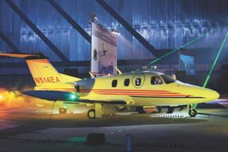 Компания «Эклипс Авиэйшн» создана в 1998 г. как филиал корпорации «Вильямс Интернэшнл» (Williams International). Самолет «Эклипс-500» относится к классу сверхлегких реактивных лайнеров (Very Light Jet), включающему 4-8-местные реактивные самолеты со взлетной массой не более 4500 кг. Длина машины составляет всего 10,2 м, размах крыла – 11,6 м. Масса пустого «Эклипса» – 1646 кг, максимальная взлетная – 2719 кг. Силовая установка включает два ТРДД PW610F взлетной тягой 410 кгс канадской компании «Пратт-Уитни Канада». Самолет способен перевозить 3-5 пассажиров на дальность до 2400 км с крейсерской скоростью 685 км/ч. Взлетно-посадочная дистанция составляет всего около 700 м. Применяемая авионика позволяет ему выполнять полеты в любых метеоусловиях, в т.ч. совершать трансатлантические перелеты.