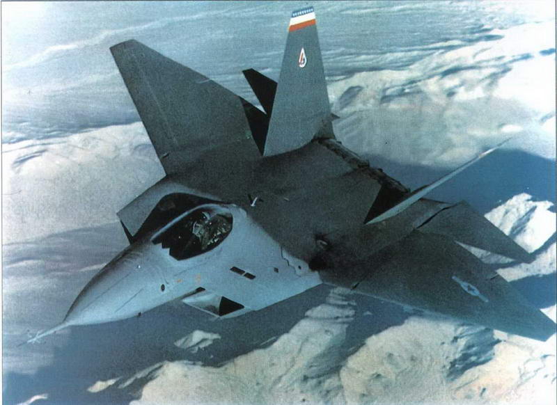 Теперь перейдем непосредственно к объекту нашего внимания - истребителю F-22A. Некоторые из перечисленных характеристик его можно узнать из приведенной выше статьи, другие наверняка скоро появятся в прессе. Заинтересованный читатель, вооружившись калькулятором и линейкой, легко может определить значения некоторых критериев совершенства «Рэптора», а затем сравнить их с соответствующими данными Су-27 или F-15. При этом окажется, что по многим показателям этот «суперсамолет» ничем не лучше истребителей четвертого поколения. Но мы не будем задерживать на этом внимание, отчасти потому, что некоторые из известных сегодня характеристик F-22A носят откровенно рекламный характер. Наша задача в другом - критически проанализировать некоторые из тех технических решений, которые позволяют отнести его к истребителям пятого поколения, отметить их сильные и слабые стороны. Такой подход даст возможность более осознанно воспринимать поднятую вокруг этой машины рекламную шумиху.