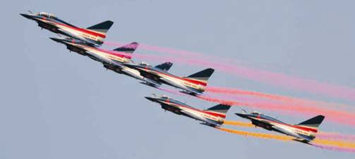 Порадовали и китайские военные. Знаменитая пилотажная группа ВВС НОАК впервые приняла участие в «Эршоу Чайна» после своего перевооружения на новейшие истребители J-10. Среди других военных новинок — самолет ДРЛО KJ-200, модернизированный дальний ракетоносец H-6H, новейший сверхзвуковой учебно-боевой самолет L-15, самолет первоначального обучения L-7 и многое другое.