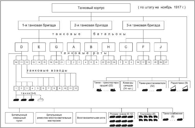 Схема организации британского Танкового корпуса на ноябрь 1917 г.