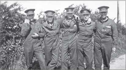 Офицеры Танкового корпуса в рабочих комбинезонах и с кокардой корпуса на фуражках.