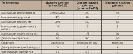 Основные характеристики новых беспилотных вертолетных комплексов ОАО «Камов»