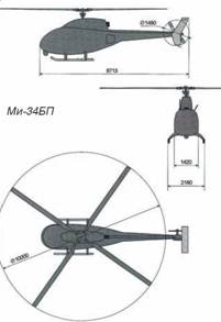 Показал свой проект беспилотного вертолета на выставке и МВЗ им. М.Л. Миля. Он разрабатывается на базе легкого поршневого учебно-тренировочного и многоцелевого вертолета Ми-34 и получил название Ми-34БП.