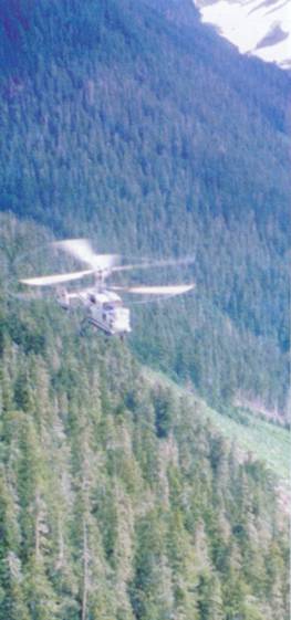 Если площадки базирования вертолетов находились на высотах 200-400 м. то высота, с которой вывозилась спиленная древесина, находилась в пределах 300-1000 м. Древесина складировалась на площадках, расположенных на высотах 150-300 м в горах, либо стволы деревьев сбрасывались с внешней подвески вертолета в воду, где катерами группировались в плоты. Склоны гор были разнообразны, но средний угол их наклона обычно составлял 40-70 градусов.