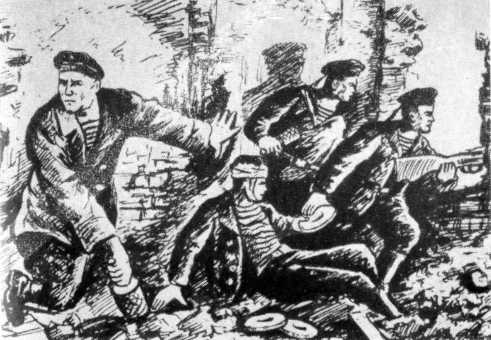 Десантники ведут бой. Рисунок участника петергофского десанта Г. К. Васильева