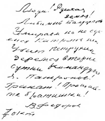 — Заверяем — никто не дрогнет! Только вперед! На том держались и будут держаться русские матросы.