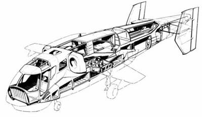 В 1991 г. начальник бригады увязки ОТП С.В. Носов представил Генеральному облик перспективной машины. Правда, от базовой «Акулы» на чертежах мало что осталось. С одной стороны, условия работы морских летчиков в значительной степени отличаются от «сухопутья». Кроме того, требования морской авиации однозначно определяли необходимость второго члена экипажа. Посему вертолет лишился бронирования, его кабина «раздалась» по ширине, добавив пространства для кресла штурмана, установленного уступом справа-сзади от командирского, и систем жизнеобеспечения. Носовая часть резко укоротилась для увеличения обзорности, место «Шквала» занял обтекатель бортовой РЛС сантиметрового диапазона. Фюзеляж вытянулся, потерял место установки бортовой пушки, зато приобрел герметичный отсек – ведь основным вооружением противолодочных вертолетов в те годы была 450-мм авиационная торпеда со спецбоезарядом, который надо было «содержать в тепле и сухости». Хвостовое оперение стало двухкилевым, подобно старому доброму Ка-27. С.В. Носову удалось даже вписать в габариты машины лебедку по левому борту. В общем, в эскизном проекте черты «Черной Акулы» угадывались только в мотогондолах, консолях крыла и шасси. Существенный вклад в новый облик внес инженер ОТП А.М. Давыдов, скомпоновавший хвостовую балку со спецоборудованием.
