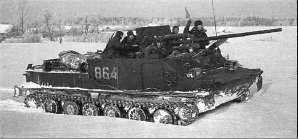 Бронетранспортер БТР-50П с установленной на нем 57-мм противотанковой пушкой ЗИС-2.