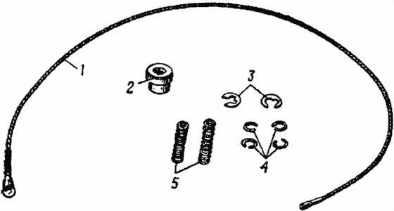 Запасные части (рис. 37): трос, ролик, шайбы, стопорные кольца, пружины для замены поломавшихся частей.