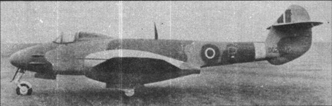 В декабре 1944 г. 616-ю эскадрилью начали перевооружать на новые истребители "Метеор" F.III (G.41C). Пропущенный F.II существовал в единственном экземпляре. Когда серийное производство F.I задерживалось из-за длительной доводки двигателей W.2B/23, министерство авиапромышленности в качестве альтернативы собиралось выпустить серию из 50 истребителей с моторами Н.1 "Гоблин". Но испытания DG 206 показали, что короткие и широкие мотогондолы "Гоблинов" резко ухудшали обтекание крыла. Из-за возникновения тряски нельзя было полностью использовать тягу этих мощных двигателей в горизонтальном полете. Впоследствии Н.1 эксплуатировали на истребителях "Вампир".