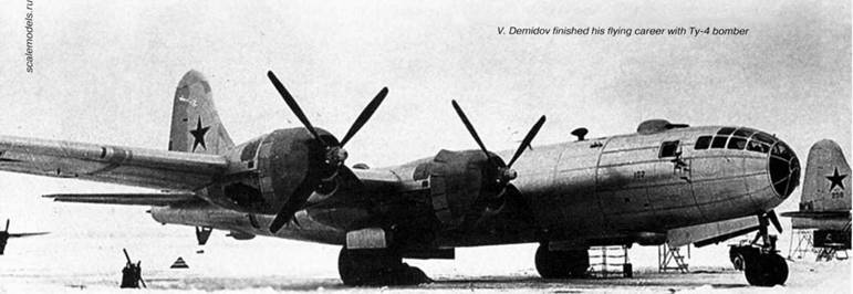 Летную карьеру В.А. Демидов закончил на бомбардировщике Ту-4