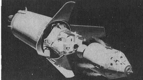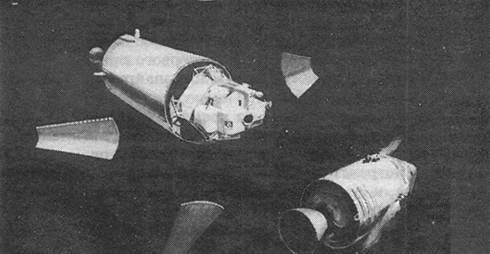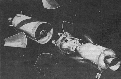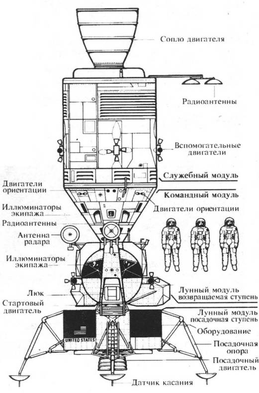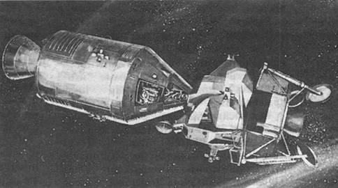 Лунный космический корабль (КК) "Apollo" выводился на орбиту Земли и отправлялся к Луне одним ракетоносителем (РН) "SalurnV" в виде раздельных модулей: командно-служебного (CSM) и лунного (LM), стыкуемых в единый комплекс на трассе Земля- Луна.