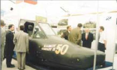 Не обошлось и без экзотики. Английская фирма Intera-Firebird представила три машины с реактивным приводом несущего винта. В качестве топлива используется перекись водорода, которая под действием катализатора превращается в сверхгорячий пар и кислород. Газовая струя выходит из сопел, расположенных на концах лопастей, вращая их. При этом развивается мощность до 100 л.с., а скорость вертолета достигает 160 км/ч. На статической стоянке демонстрировались беспилотный вертолет с рулевым винтом, аналогичный по конструкции одноместный вертолет без рулевого винта и двухместная модификация с остекленной кабиной. К сожалению, организаторы не разрешили показательные полеты «жар-птицы» (так переводится Firebird) ввиду новизны топлива. Желающие же могли посмотреть полеты в записи. Создатели машины утверждали. что «средний» солдат способен научиться летать на этом аппарате за 30-40 минут.