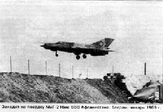 На юге истребители разместили на аэродроме Кандагар, расположенном на краю Регистанской пустыни. Центральные и восточные районы прикрыли эскадрильи, базировавшиеся на Баграм - мощную военно-воздушную базу в 50 км на север от Кабула, весьма подходившую для базирования ИА. Построенный еще при короле Захир-Шахе аэродром служил основной базой и учебным центром афганских ВВС; на нем находились полки МиГ-21 и Су-7БМК, сыгравшие немалую роль в дни апрельской революции 1978 г. Первоклассная бетонная ВПП Баграма, уложенная американцами (друживший с СССР Захир-Шах постройку инженерных сооружений поручил все же западным фирмам), имела длину 3300 м, а ее ширина позволяла истребителям взлетать сразу звеном. На стоянках были построены мощные укрытия для самолетов -настоящие крепости из валунов и камней, залитых бетоном, оборудованные убежищами, связью и всеми необходимыми коммуникациями. Накрыть стоящие в них самолеты можно было только прямым попаданием. Аэродром имел ремонтную базу, мастерские, склады и хранилища для горючего. Его радиотехническое оборудование и средства руководства полетами, как все в афганской армии, были советского происхождения и полностью подходили для новых «постояльцев».* Близость Баграма к границе СССР упрощала снабжение. Кроме истребителей, на аэродроме разместили разведывательную эскадрилью МиГ-21 Р и вертолеты, развернули полевой командный пункт и узел связи.