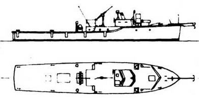 Его основные характеристики были такими: длина наибольшая 15,42 м, по ватерлинии 15 м; ширина наибольшая 3,3 м, по ватерлинии - 3,14 м; высота борта 2,2 м, осадка 0,88 м, водоизмещение 21 т, скорость 12,4 уз. Катер имел два трехлопастных винта диаметром 75 см, приводимых в действие 6-цилиндровыми дизелями фирмы "Кемпер" мощностью по 130 л.с. каждый. Топлива для них катера брали ровно 1 тонну. Рулей также было два.