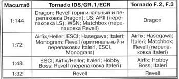 Для систематизации всего этого многообразия ниже помещена таблица моделей «Торнадо» по типам самолета, масштабам и фирмам-производителям.