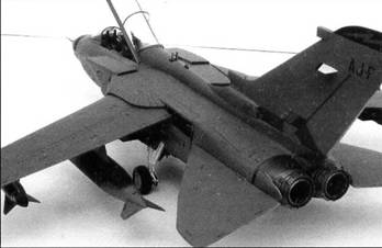 Безальтернативной пока остается «хасегавовская» модель перехватчика Tornado F.3 Однако она потребует серьезной доводки. Прежде всего, ее деталировку желательно подтянуть хотя бы до уровня новой модели Revell. Кроме того, при всей своей аккуратности расшивка японской модели лишь похожа на оригинал. Большинство ее линий расположено не на месте, а лючки – неверных размеров. Больше всего неточностей на «брюхе» модели. Так, ниши для крепления передних ракет Sky Flash смещены назад (их следует передвинуть на 3-4 мм вперед, вплотную к нише носовой стойки шасси), в задней части «брюха» отсутствуют два крупных патрубка, а имеющиеся ближе к нишам шасси обтекатели неверны и по форме, и по расположению.