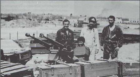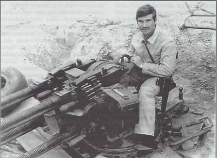 Счетверенная установка пулеметов ДШК в поясе прикрытия баграмского аэродрома. На поясе позирующего летчика — автоматический пистолет АПС в кобуре-прикладе, ставший штатным оружием летного состава Осень 1986 года