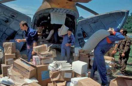 После распада Советского Союза многие его бывшие республики превратились в горячие точки. В Таджикистане в начале 90-х годов шла настоящая гражданская война, приведшая к серьезному экономическому кризису. После нормализации обстановки в феврале 1996 года правительство Таджикистана обратилось за помощью к России. И шесть самолетов Ил-76 авиации МЧС доставили в Душанбе более 150 тонн продовольствия, 13,5 тонн медикаментов.