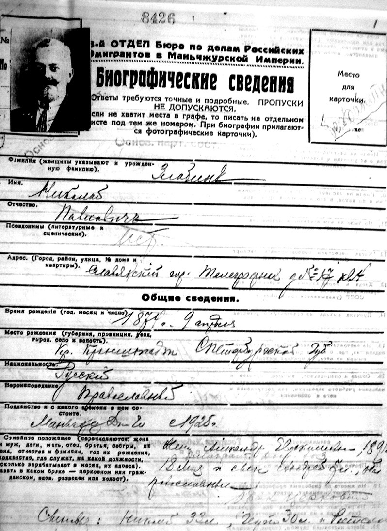 Биографические сведения Н.П. Злобина. Маньчжурия