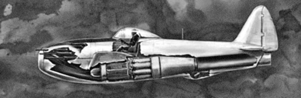 Картвели решает, что его будущий реактивный истребитель не будет иметь боковые воздухозаборники, только носовой, как у английского «Глостера». Вообще, этот Клемин очень умный и талантливый, он как будто видит воздух, обтекающий самолёт на большой скорости. Надо его чаще приглашать для обсуждения вариантов аэродинамической схемы реактивной машины. А вариантов уже было несколько. Самый простой и надёжный – подвесить реактивный двигатель вместо поршневого так, чтобы обрез его сопла был снизу фюзеляжа. Можно использовать готовый первый опытный ХР-72. Эта машина уже летала, и доводка новой силовой установки не потребует много времени.