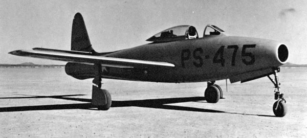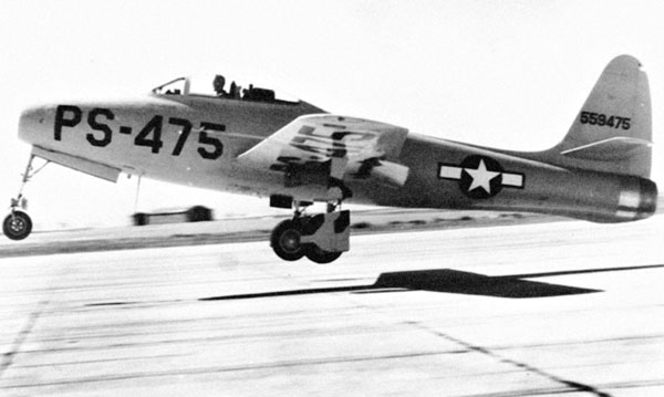 В пустыне Мохаве к северу от Лос-Анджелеса несколько высохших озёр образовали идеально ровные и твёрдые поверхности, с которых могли взлетать даже тяжело нагруженные самолёты с высоким давлением в авиашинах. На дне одного из этих бывших озёр, где расположилась авиабаза Мурок, в январе 1946 года начал скоростные пробежки первый реактивный истребитель Картвели. Под управлением майора Лайна он совершил первый взлёт 28 февраля 1946 года и благополучно приземлился.
