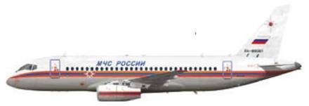 Впервые о намерении российского Министерства по чрезвычайным ситуациям приобрести самолеты SSJ100 (RRJ-95) стало известно в мае 2014 г., когда на официальном сайте госзакупок (zakupki.gov.ru) была размещена информация о соответствующем тендере на поставку. По условиям закупки, поставляемая специальная модификация именовалась «Воздушный пункт управления с многопрофильными функциями (ВПУ МПФ) на базе ближнемагистрального самолета RRJ-95LR-100». Данная версия предполагалась к поставке в трехсалонном варианте на 19 пассажирских мест, включающем первый салон с четырьмя поворотными и таким же количеством поворотно-откидных кресел, трехместным диваном и гардеробом, второй салон с семиместным диваном и салон главного пассажира в хвостовой части фюзеляжа с Г-образным диваном, трансформируемым в кровать, креслом повышенной комфортности, столом, журнальным столиком и гардеробом. Предусматривалась возможность трансформации салона в вариант на 11 пассажиров с установкой трех медицинских модулей.