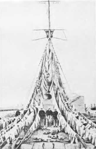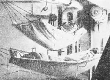 Подвесные койки по утрам тщательно связывают и укладывают в сетки[20], где они остаются до вечерней раздачи коек. Не следует подвешивать койки возле грелок или сильно нагретых механизмов, а также у выходных наружу трапов, у которых нет обвесов или тамбуров. При несоблюдении этого легко можно простудиться. Во время дневного отдыха не следует также укладываться в таких местах, где тело может или сильно согреваться, или, наоборот, попадать под резкую струю холодного воздуха. Койки и матрасные чехлы моют 2 раза в месяц.