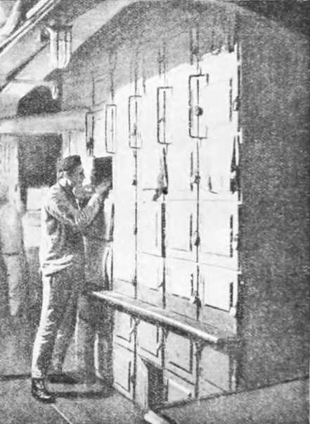 Теснота на корабле заставляет использовать всякое свободное пространство, а потому для вещей личного состава можно предоставить лишь очень небольшие помещения. Под местными койками устраиваются рундуки, затем имеются небольшие шкафы. Предметы одежды помещаются в большие и малые чемоданы, сделанные из толстой парусины, кроме того для некоторых мелких личных вещей краснофлотцы имеют небольшие ящики или шкатулки. Большие чемоданы помещают отдельно и в них укладывают те вещи, какие не нужны каждый день. Шкафы, рундуки и шкатулки следует содержать в чистоте и вещи в них держать в порядке. Хранить съестные припасы в них не следует, чтобы не привлекать мух и тараканов. Чемоданы моют раз в месяц.