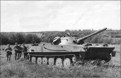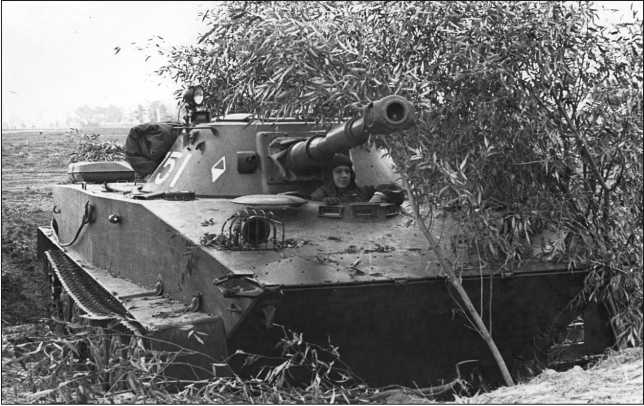 Плавающий танк ПТ-76Б на боевой позиции. Учения «Днепр», сентябрь 1967 года.