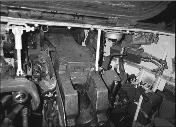 Для крепления пушки в походном положении внутри башни (вверху над пушкой) установлен стопор.
