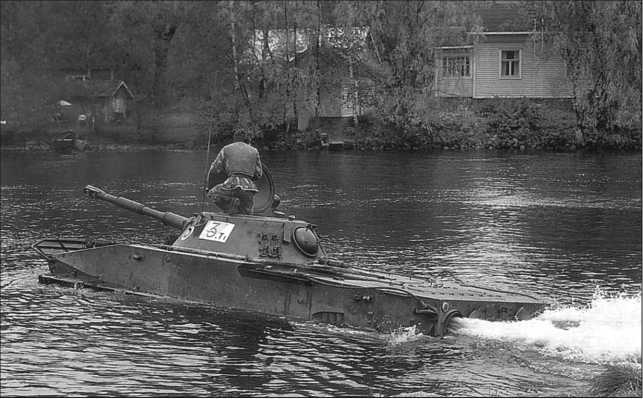 На плаву ПТ-76 из состава разведывательного взвода 3-го танкового батальона финской армии. Весна 1980 года.